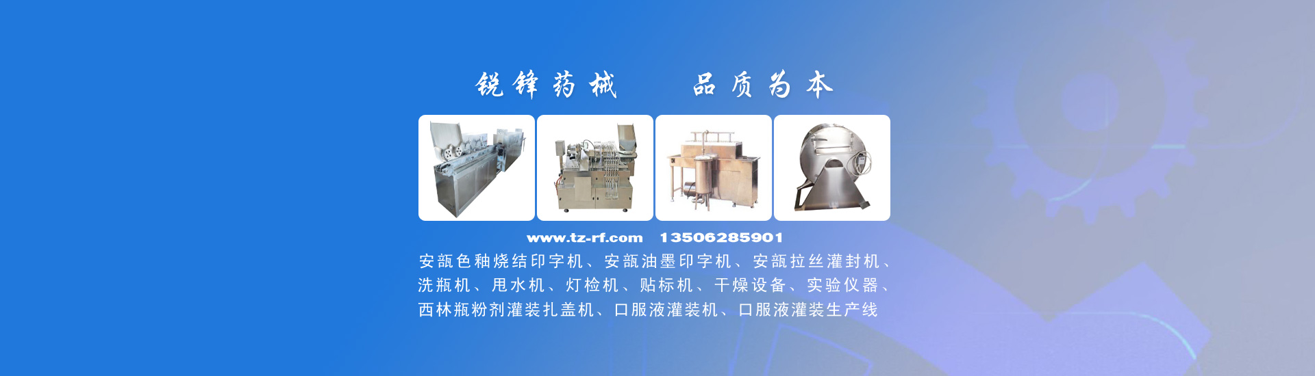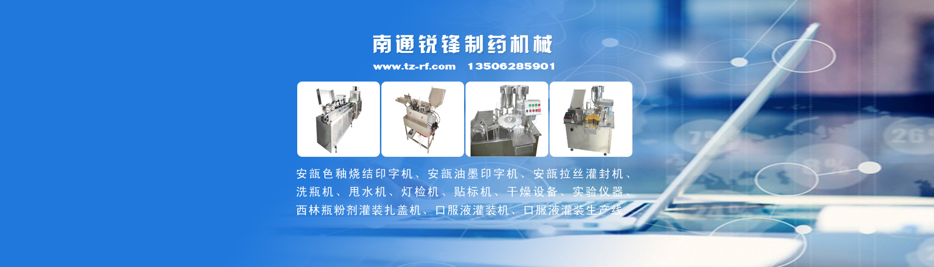 公司主要產(chǎn)品有:安瓿色釉燒結印字機、安瓿油墨印字機、安瓿拉絲灌封機、西林瓶粉劑灌裝機、洗瓶機、安瓿甩水機、燈檢機、貼標機、口服液灌裝機、口服液灌裝生產(chǎn)線、制藥機械、干燥設備、實驗儀器等,并可根據(jù)客戶要求非標定制生產(chǎn)。產(chǎn)品廣泛用于制藥、食品、保健品、化妝品等行業(yè)。